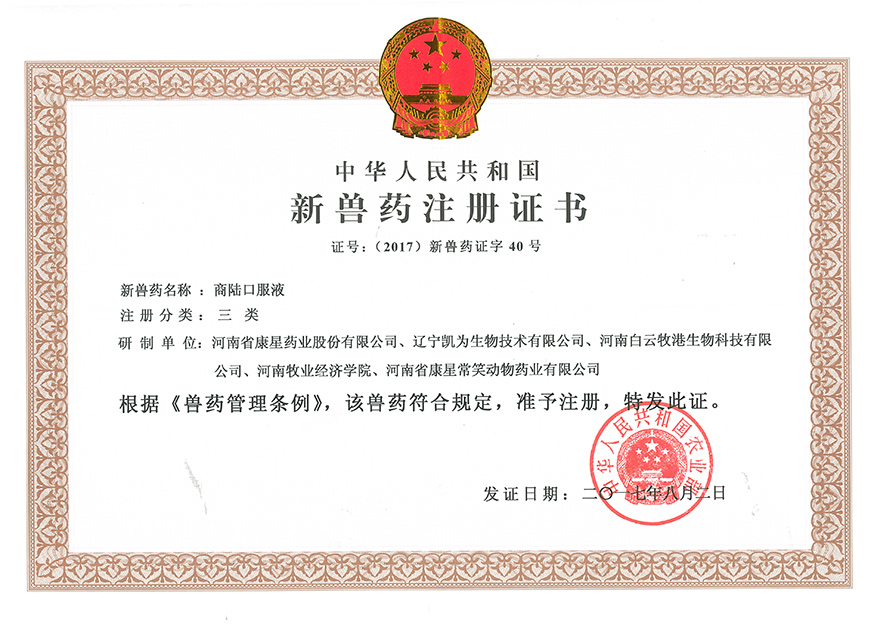 企業(yè)在發(fā)展過(guò)程中,十分重視知識(shí)產(chǎn)權(quán)和科研成果的保護(hù)工作,目前公司共有4項(xiàng)發(fā)明專利,1項(xiàng)國(guó)家三類新獸藥證書。為表彰我公司在科研工作中做出的突出貢獻(xiàn),錦州市科技局認(rèn)定我公司為2015年錦州市科技創(chuàng)新型中小企業(yè)。