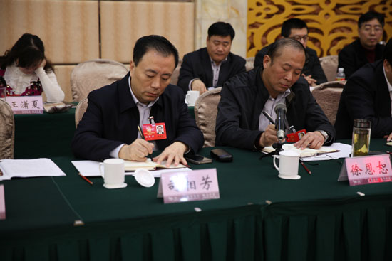 司相芳總經(jīng)理在參加省十二屆人大四次會議代表團(tuán)討論時認(rèn)真記錄