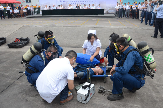 本網(wǎng)訊 5月29日上午,濟寧市第二次安委會成員單位會議暨?;沸孤?yīng)急救援演練在山東榮信煤化有限責(zé)任公司舉行。國家安監(jiān)總局呂海燕司長出席會議并對演練進行點評,濟寧市委常委、副市長周洪出席會議并作重要講話,濟寧市公安局局長周鳳文,安監(jiān)局局長陳魯起,鄒城市委副書記、市長謝成海,副市長劉剛等觀摩演練并參加會議,公司總經(jīng)理司相芳陪同觀摩演練。濟寧市安委會成員單位負責(zé)同志,各縣市(區(qū))分管縣市(區(qū))長、安監(jiān)局長,40余家重點?;菲髽I(yè)負責(zé)同志觀摩演練并參加會議。 與會人員首先觀摩了榮信煤化危險化學(xué)品泄漏應(yīng)急演練活動。上午9:00,周洪副市長宣布:“濟寧市安全生產(chǎn)月活動啟動儀式暨?;沸孤?yīng)急救援演練開始!”本次演練以機焦分廠上升管1號放散管根部因銹蝕突然破裂造成大量煤氣泄漏,一名員工因吸入大量煤氣導(dǎo)致中毒為模擬場景實施救援。煤氣泄漏后,在撤離過程中一名員工因吸入大量煤氣導(dǎo)致中毒暈倒,另一名員工撤離到安全區(qū)域后立即通知值長請求救援。值長立即向分廠領(lǐng)導(dǎo)匯報并撥打120,分廠領(lǐng)導(dǎo)接到事故報告后立即下達“停止生產(chǎn)、設(shè)備斷電、維修人員排查泄漏原因”的口令,給調(diào)度室匯報請求公司救援并立即趕往現(xiàn)場。公司應(yīng)急救援小組人員穿戴防護用具后迅速進入現(xiàn)場救出中毒員工,將爐頂員工疏散至安全區(qū)域。公司調(diào)度室立即撥打119請求支援,公司領(lǐng)導(dǎo)及各部門負責(zé)人第一時間到達事故現(xiàn)場成立救援指揮部。指揮部分別向市安監(jiān)局、質(zhì)監(jiān)局、環(huán)保局、衛(wèi)計局、公安消防大隊報告事故情況,請求地方救援。經(jīng)過維修人員緊張的排查、搶修,將管道泄漏部位修復(fù),險情得以控制。 救護車、消防車趕到現(xiàn)場后,醫(yī)護人員查看中毒者傷情,隨即用救護車將其送往醫(yī)院,消防車開至現(xiàn)場向設(shè)備泄漏位置用水槍稀釋,防止發(fā)生火災(zāi)。環(huán)保局、安監(jiān)局帶領(lǐng)相關(guān)人員到達事故現(xiàn)場,安監(jiān)局負責(zé)指揮協(xié)調(diào),環(huán)保局對周圍環(huán)境進行了監(jiān)測,經(jīng)環(huán)境檢測沒有對周圍環(huán)境造成污染。本次演練結(jié)束。 演練結(jié)束后,在公司禮堂召開濟寧市第二次安委會成員單位會議,各縣(市、區(qū))就落實企業(yè)主體責(zé)任工作進展情況和赴北京順義區(qū)考察學(xué)習(xí)后有關(guān)工作落實情況,作了工作匯報。周洪副市長指出,今年以來,各級各部門緊緊圍繞安全生產(chǎn)這條主線,不斷提升思想認識,扎實推進網(wǎng)格實名制、落實企業(yè)主體責(zé)任、完善政府購買服務(wù)等工作,有效遏制了安全事故的發(fā)生,安全生產(chǎn)工作取得了顯著成效。6月份是全國第14個“安全生產(chǎn)月”,對于廣泛宣傳安全生產(chǎn)大政方針,普及國家安全生產(chǎn)法律法規(guī),鞏固和擴大安全生產(chǎn)專項整治成果具有重大意義。各級各部門要認真開展形式多樣的宣傳教育活動,確保規(guī)定活動扎扎實實,自選活動有聲有色。