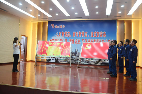 儀式在雄壯的《國際歌》聲中拉開帷幕。新黨員進行了入黨宣誓,老黨員重溫入黨誓詞。全體黨員面對鮮紅的黨旗,舉右手齊肩握拳,神情莊重,在公司黨委委員、人力資源部部長程冬梅的領(lǐng)讀下,進行莊嚴宣誓,洪亮而堅定的聲音回響在禮堂上空。