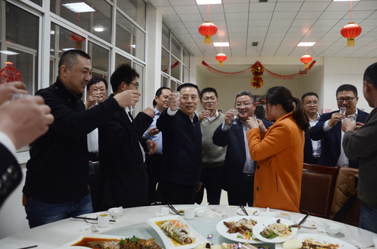 隨后王謹董事長致祝酒詞,王董事長首先代表公司董事會,向一直以來信任和支持榮信煤化的各級領導和朋友們,向與公司一道奮勇攀登的同事及家屬,致以新春的祝福和崇高的敬意。王董事長指出,2015年,是榮信煤化奮力攀登的一年,是挑戰(zhàn)極限的一年。在這不尋常的一年中,我們奮力拼搏,披荊斬棘。我們在砥礪前行中做到了同行業(yè)最好水平,黨委政府、股東單位、社會各界為我們點贊!當2015年漸行漸遠,回望一年來走過的路、越過的坎,才驀然發(fā)現,身后的崎嶇,在不知不覺中已抬升了我們的高度。