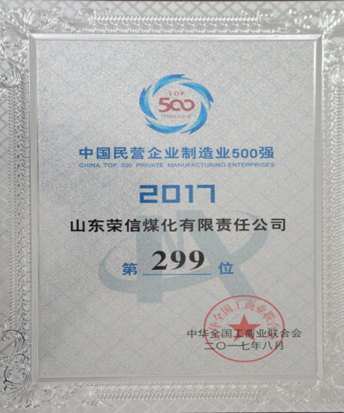 近期,由全國工商聯(lián)發(fā)布的“2017中國民營企業(yè)制造業(yè)500強(qiáng)”榜單在濟(jì)南揭曉,榮信集團(tuán)以1123478萬元的營業(yè)收入,位列榜單299位。由中國企業(yè)聯(lián)合會、中國企業(yè)家協(xié)會發(fā)布的“2017中國制造業(yè)企業(yè)500強(qiáng)”榜單在南昌揭曉,榮信位列榜單405位。