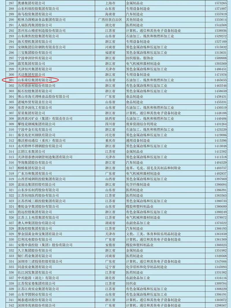 8月29日上午,由全國(guó)工商聯(lián)和遼寧省人民政府共同主辦的2018中國(guó)民營(yíng)企業(yè)500強(qiáng)峰會(huì)在沈陽(yáng)召開,會(huì)上發(fā)布了2018中國(guó)民營(yíng)企業(yè)制造業(yè)500強(qiáng)名單。其中山東榮信集團(tuán)榜上有名,位居榜單第301位。這是繼公司建業(yè)以來先后于2014年、2015年、2017年榮獲該項(xiàng)榮譽(yù)之后的又一重大殊榮。