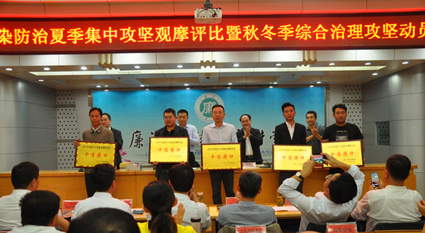 10月10日,濟寧市港口作業(yè)現(xiàn)場污染防治觀摩總結(jié)暨秋冬季大氣污染綜合治理動員會議在港航局14樓會議室召開。會上,通報了現(xiàn)場觀摩評比情況。榮信港在全市所轄47家港口污染防治評比中,取得第二名的優(yōu)異成績,榮獲2018年度港口污染防治現(xiàn)場觀摩“十佳港口”榮譽稱號。