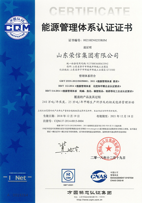 近日,山東榮信集團有限公司順利通過了方圓標志認證集團有限公司組織的能源管理體系審核。