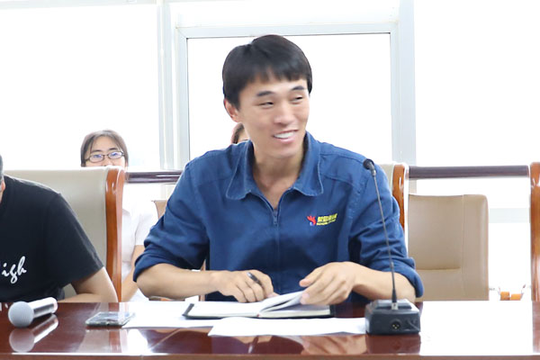 會上,大學生們分別就各自進入榮信的工作情況進行分享,談所學所感、所思所悟,并提出一些工作中遇到的問題及建議。工程技術(shù)部部長助理王菲菲、化產(chǎn)分廠副廠長張乃湛先后分享了他們從大學畢業(yè)到加盟榮信十多年拼搏奮斗的點點滴滴。
