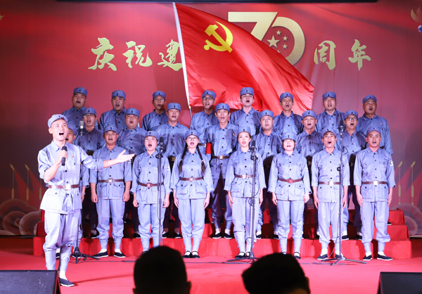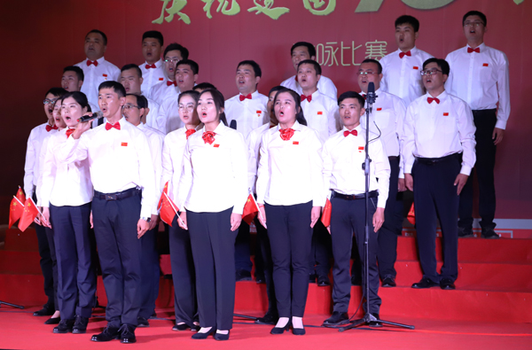 參加比賽的11支隊伍,身著盛裝,懷著對黨對祖國赤忱的熱愛,深情演繹出榮信人奮發(fā)向上的昂揚斗志。伴隨著悠揚的旋律,各參賽隊通過獨具匠心的編排,采取領唱、朗誦、合唱、伴舞等多種藝術表現(xiàn)形式,緊扣愛黨愛國主題,演唱了《在燦爛的陽光下》《中國,中國,鮮紅的太陽永不落》《英雄贊歌》《沒有共產黨就沒有新中國》《我們走在大路上》等膾炙人口的經典歌曲,用大氣磅礴的歌聲唱響了榮信人對祖國的深情祝福,也唱響了榮信人對美好未來的憧憬和希望。整場比賽精彩紛呈、高潮迭起,愛國情、強企夢在心頭涌動,大家都深受感動,引起了評委和觀眾的強烈共鳴。