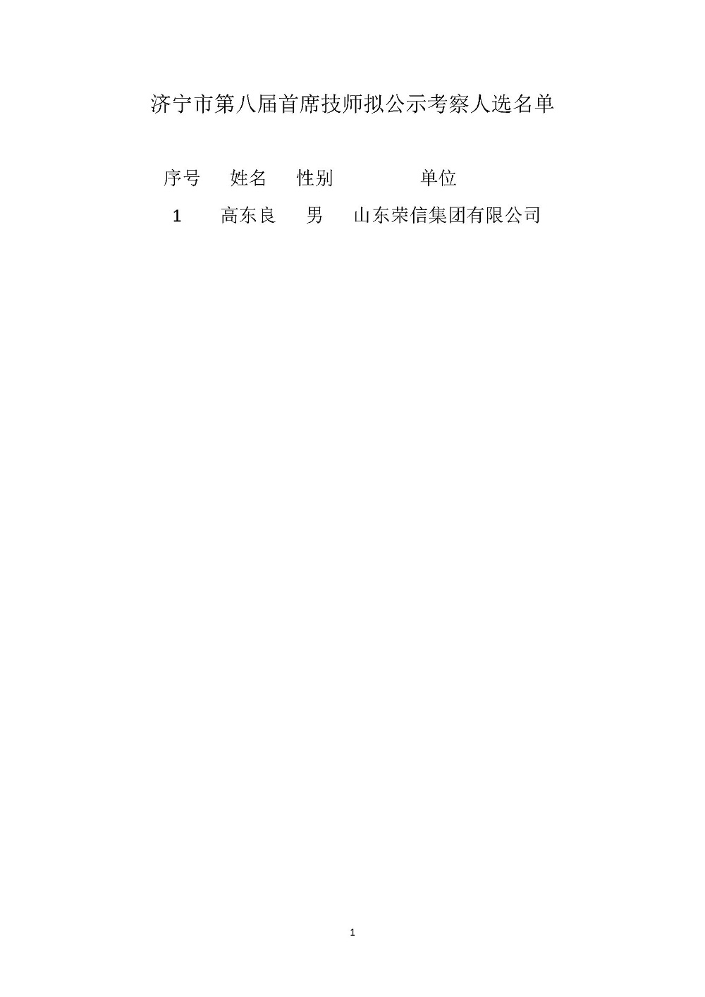 關(guān)于濟(jì)寧市第八屆首席技師擬公示考察人選的公示公告