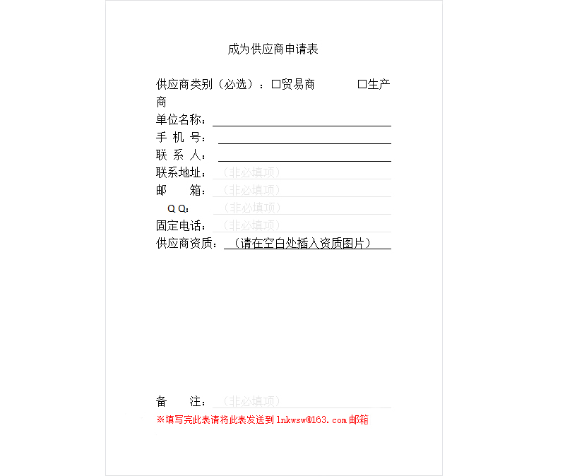 成為供應(yīng)商申請(qǐng)表